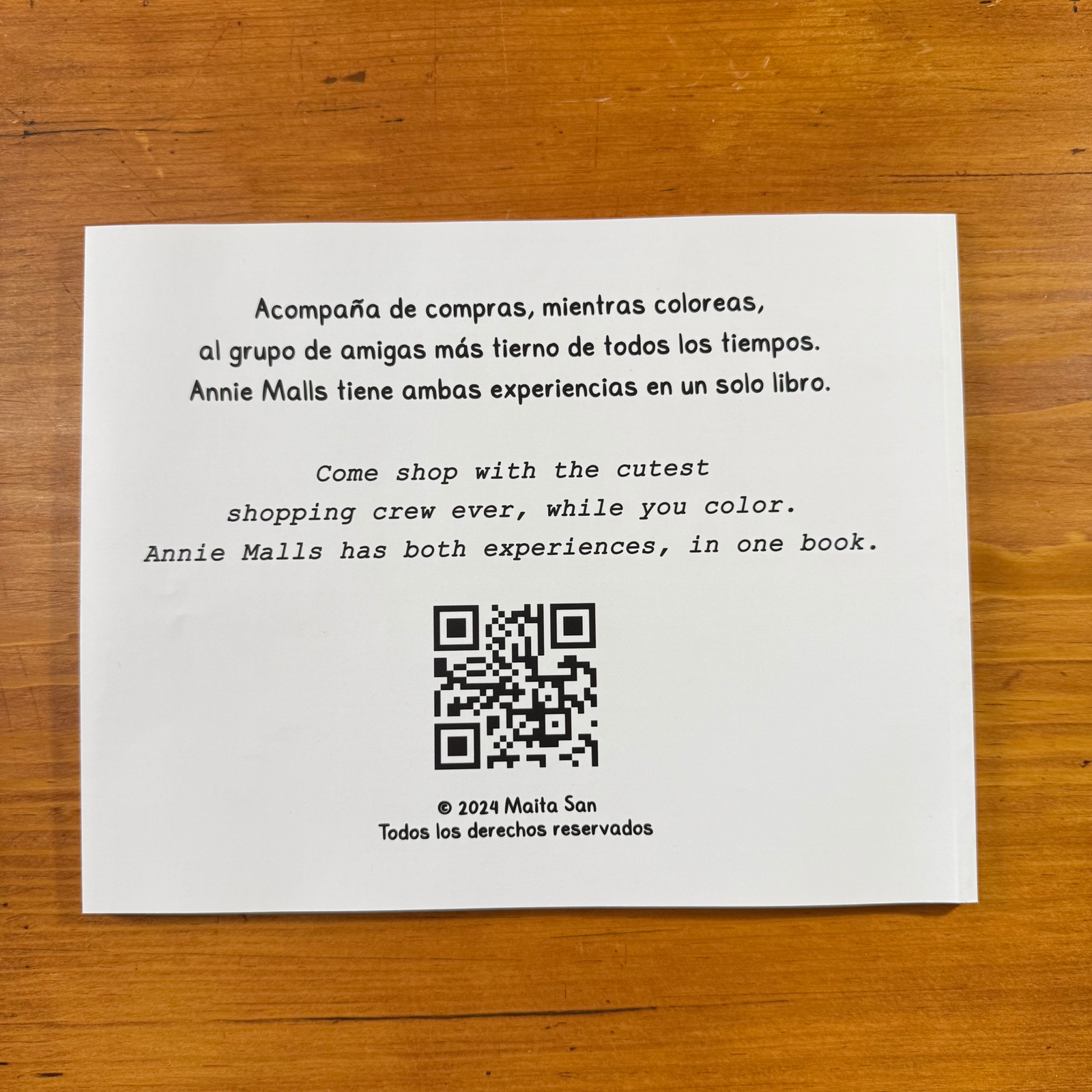 Acompaña de compras al shopping crew más tierno de todos los tiempos, mientras coloreas. “Annie Malls: Shopping coloring book” es un libro para colorear donde Annie Bunny, Poofy Barks, Mina Kitten, Cheeky Hamster y Fonny Bear exploran distintos rincones de una plaza, realizando divertidas actividades en cada página.