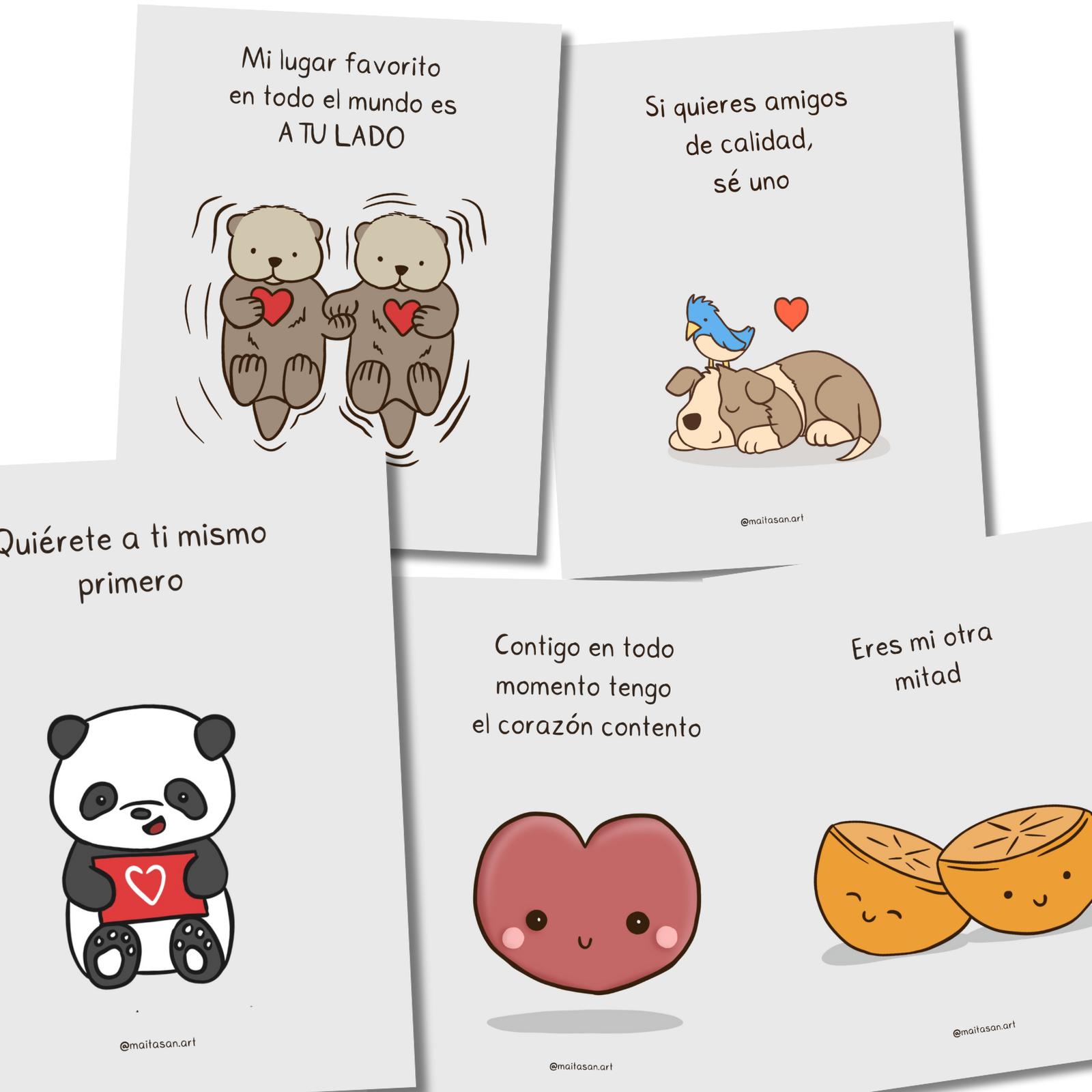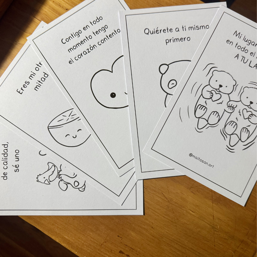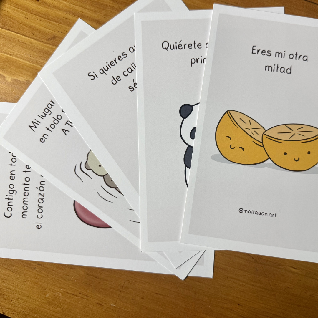 Este set incluye 5 tarjetas ilustradas con frases bonitas, pensadas para un detalle sencillo y especial en San Valentín.