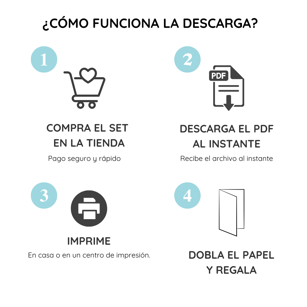 Recibe el archivo al momento de completar tu compra y podrás imprimir tus tarjetas en casa el mismo día.